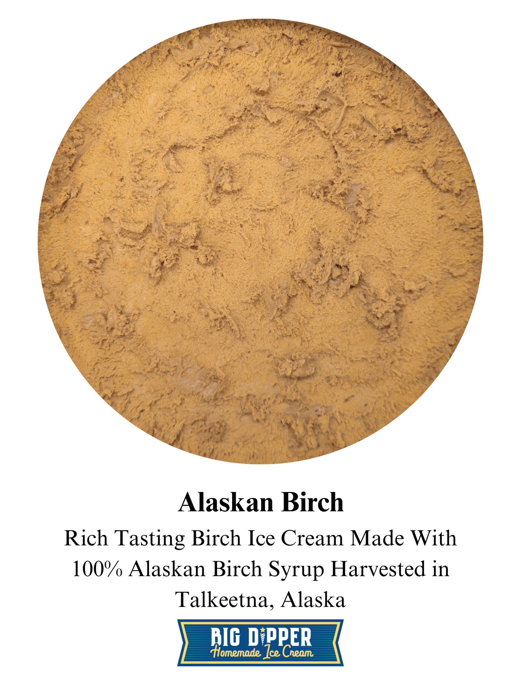 DAIRY MIX (whole milk, cream, cane sugar, non-fat dried milk, filtered water, cage-free egg yolks, guar gum, carrageenan, dextrose), Alaskan Birch Syrup (Harvested by Alaska Wild Harvest in Talkeetna), caramel color