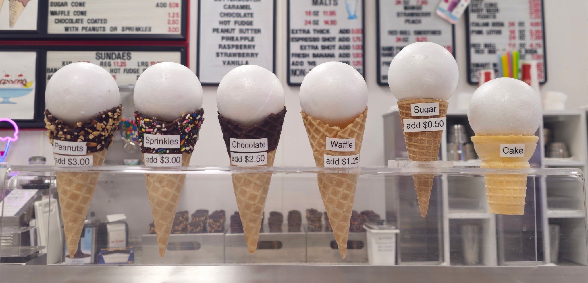 Scroll down to view our full menu. Click on any ice cream to view nutritional and allergen information. Please note that this information is subject to change, and if there are any allergy concerns you should always check with an employee.